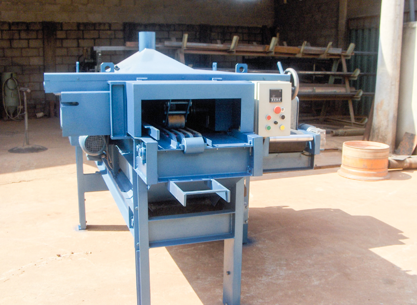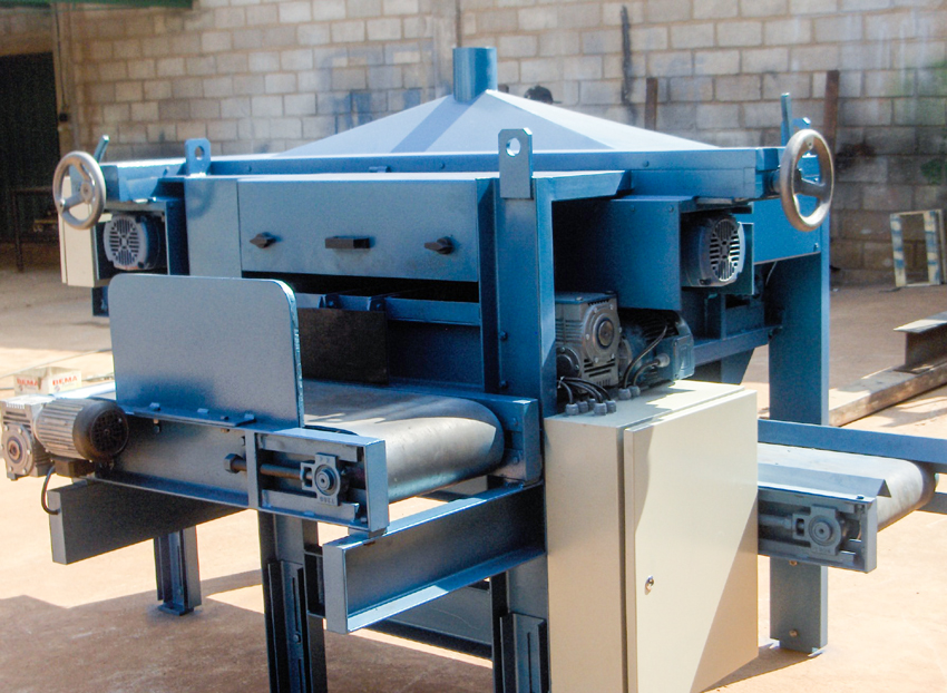 Máquina automática para corte rustico em peças de ardósia, para uso como telha.