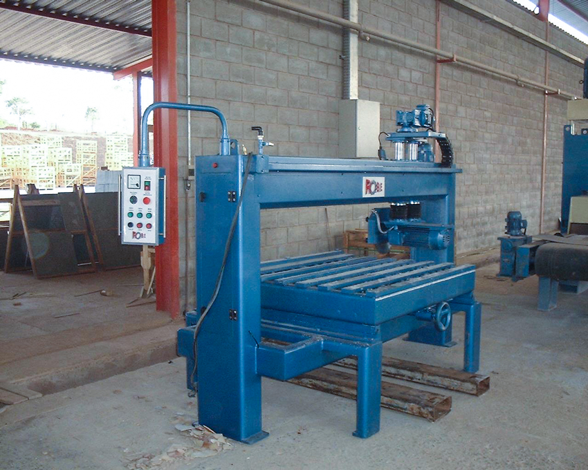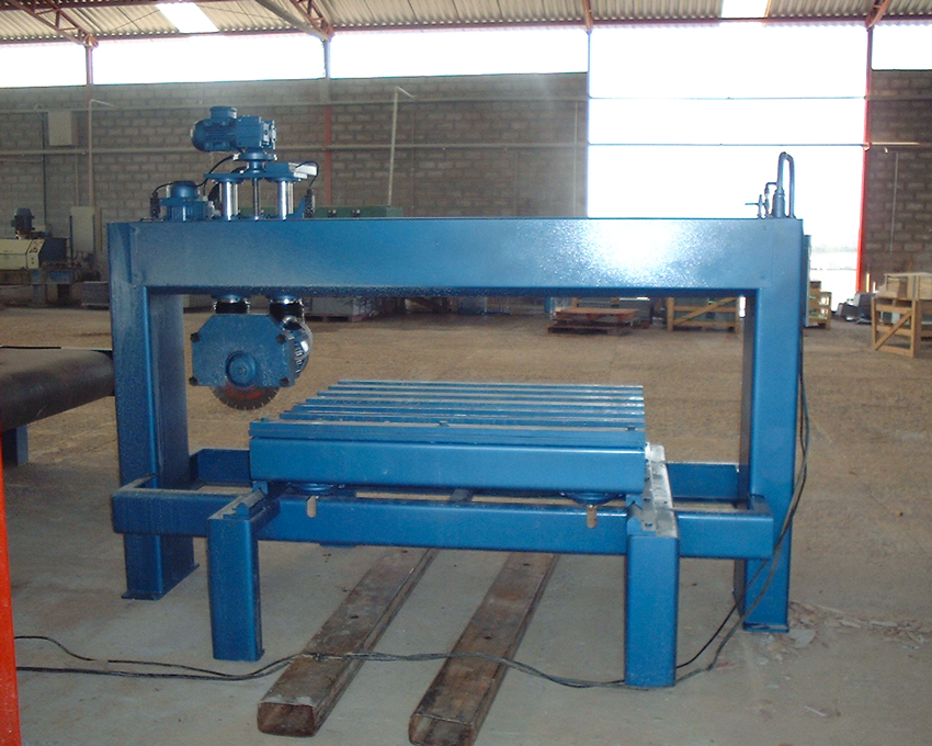 máquina semi-automática , para cortar pequenas peças ou ladrilhos de pedras ( ardósia, mármore, granito, quartzito, etc ). Mesa para colocação do material e corte através de mandril suspenso tipo ponte . Potência instalada 20 cv.